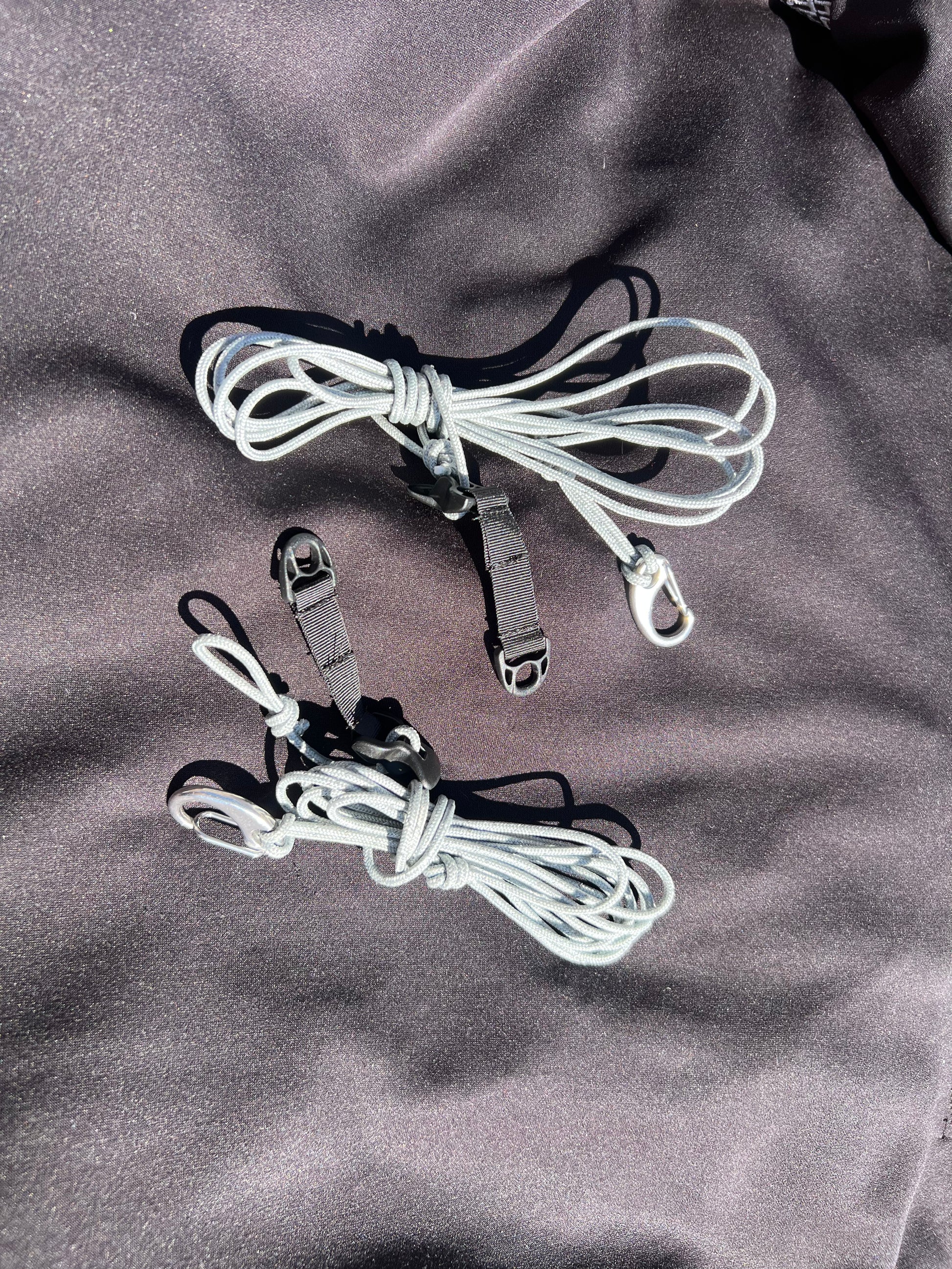 These adjustable lines are our chosen method for rainfly set-up on our hammock stands. You can use them for the same purpose or any other situation where an easily adjustable line is needed. The line lock/d-ring combination lets you set up quickly and smoothly, without tying any knots!